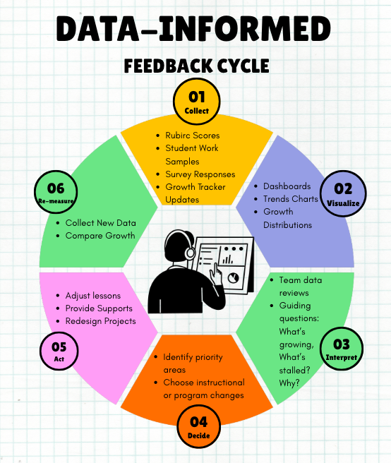 Collecting data doesn’t improve learning- using it does. This project demonstrates how I designed a continuous data cycle that connects assessment, reflection, and action to strengthen learning quality across programs.